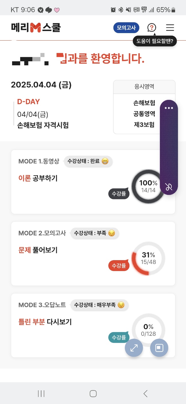 메리츠 파트너스 시험 공부 방법 및 꿀팁은 사실 기출 문제를 풀어보라입니다. 사실 저 같은 경우 기출 문제를 30퍼 밖에 풀어보지 않았으며 동영상 강의 또한 그냥 강의를 틀어놓고 듣지는 않았습니다. 하지만 시험 문제가 총 50문항인데 공통 영역의 16문제가 손해보험 및 제 3보험 점수에 합산되어 들어가다보니 공통영역을 집중적으로 공부했습니다.